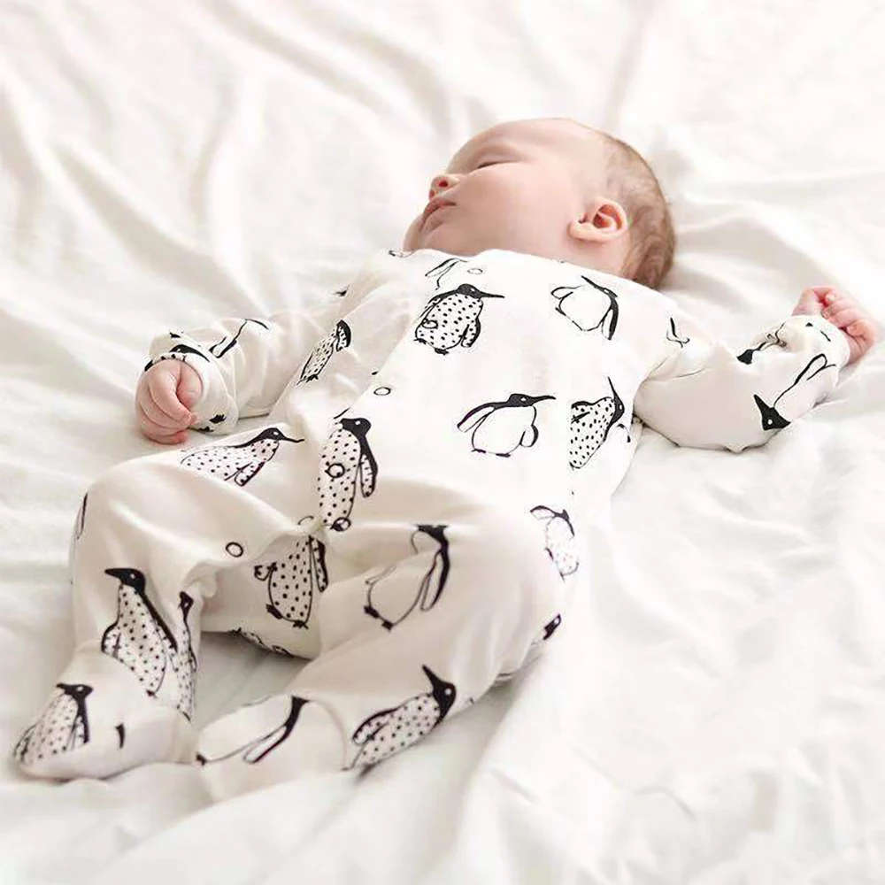 Пижама для новорожденных мальчиков и девочек, Хлопковая пижама с длинным рукавом, ночная рубашка для новорожденных, детская одежда
