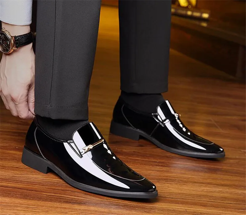 Туфли мужские из лакированной кожи, высокий рост, Классические лоферы, деловая обувь для офиса, коричневые черные