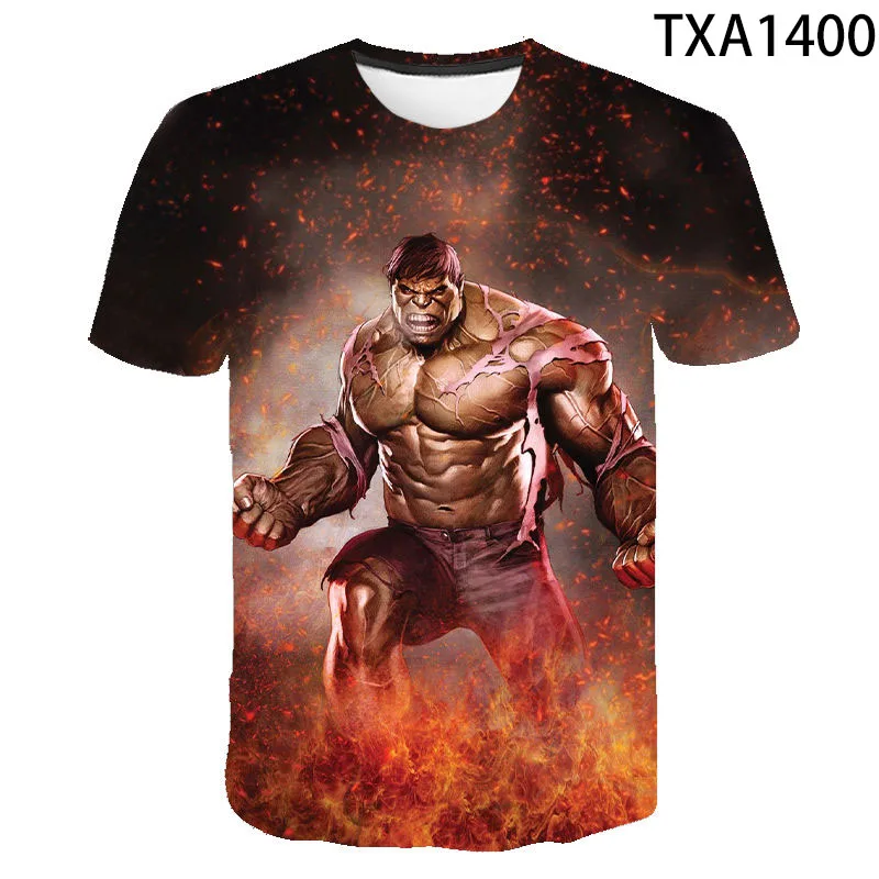 Футболка с 3D-принтом Халк, для мальчиков и девочек, летняя, 2021