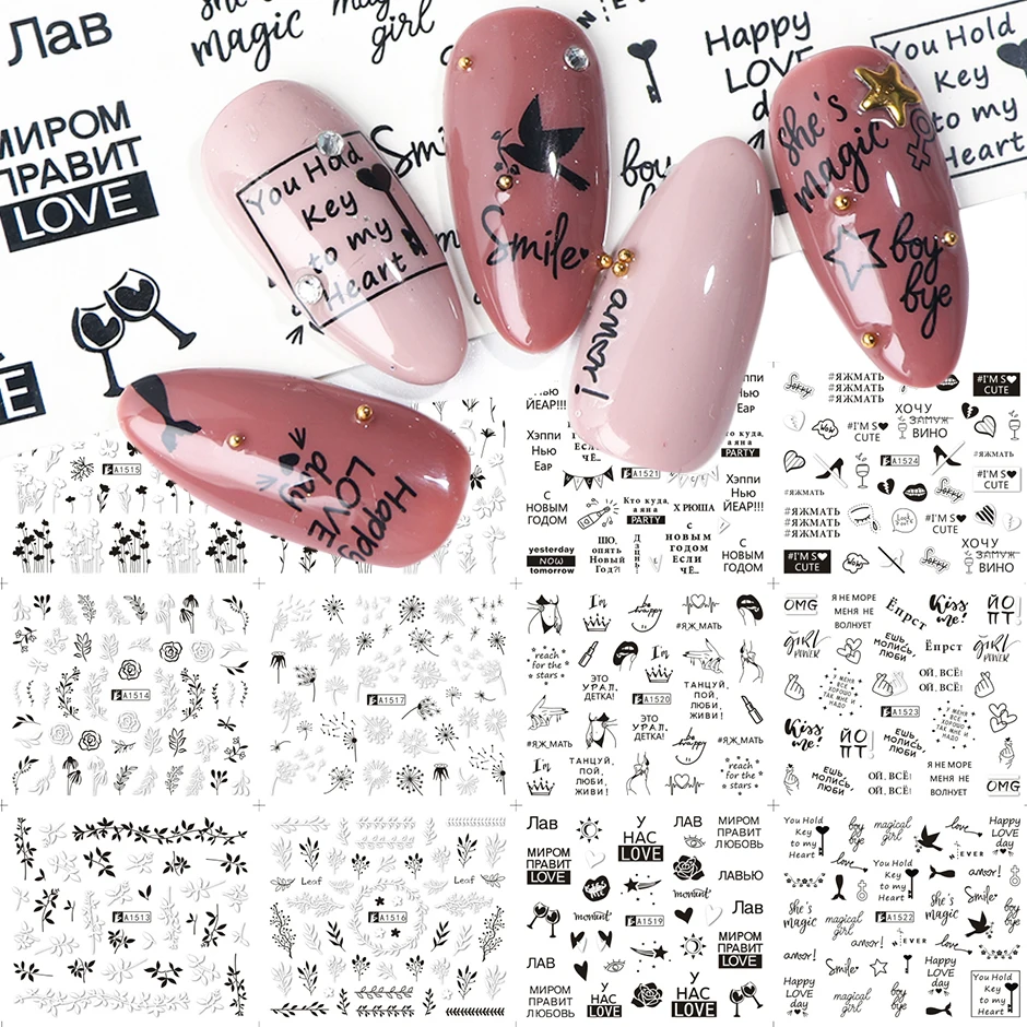 Styles 3Russian Letters Black Inscriptions on Nails
