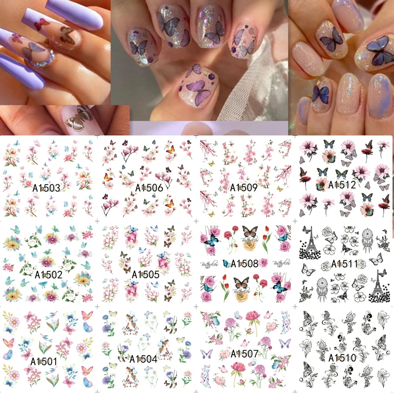 12 шт. Весна цветок Маникюр любовное письмо животных бабочкой Слайдеры для ногтей надписи, нейл-арта украшения воды Стикеры советы