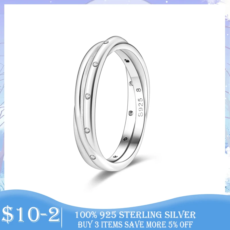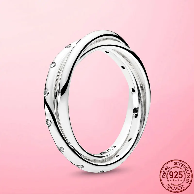 Женское кольцо, новые серебряные кольца с двумя кольцами для женщин, обручальное кольцо, обручальное Оригинальное серебряное ювелирное изделие, подарок