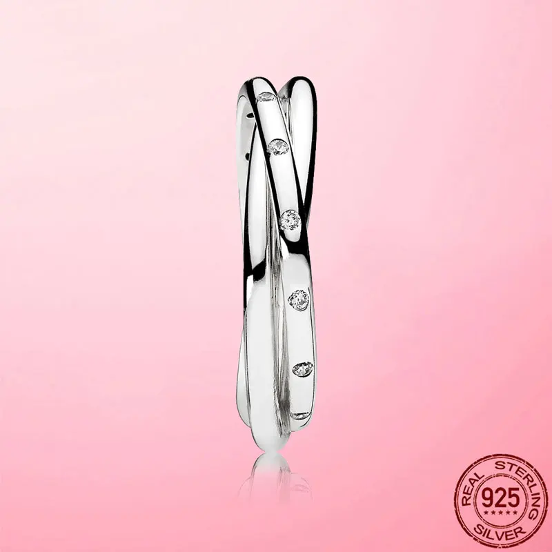 Женское кольцо с ПАВЕ, из серебра 925 пробы, с тремя кольцами
