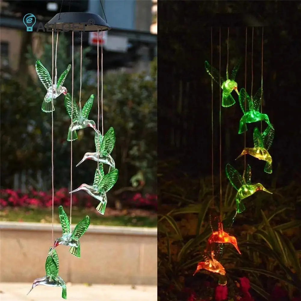 Светодиодные Красочные ветряной колокольчик с украшением в форме Солнечный Мощность лампа с украшением в виде кристаллов Колибри бабочка Водонепроницаемый открытый сад колокольчики солнечный светильник