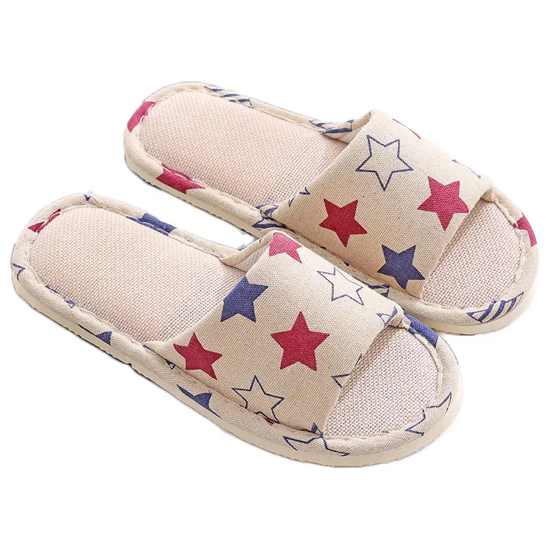 Женские повседневные домашние тапочки с цветочным принтом, мягкие Тапочки для гостей, шлепанцы с поролоновой подошвой, льняные сланцы, весна-осень