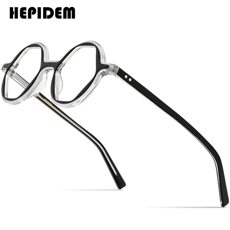 HEPIDEM Оправа для очков из ацетата, новинка 2021, ретро, винтажные многоугольные очки, мужские Оптические очки по рецепту, очки 9156