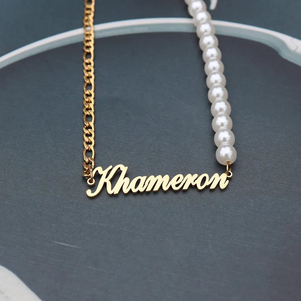 Персонализированные жемчужные ожерелья на заказ с именем жемчужные ожерелья для женщин Рождественский подарок из нержавеющей стали Фигаро Цепь колье ожерелье