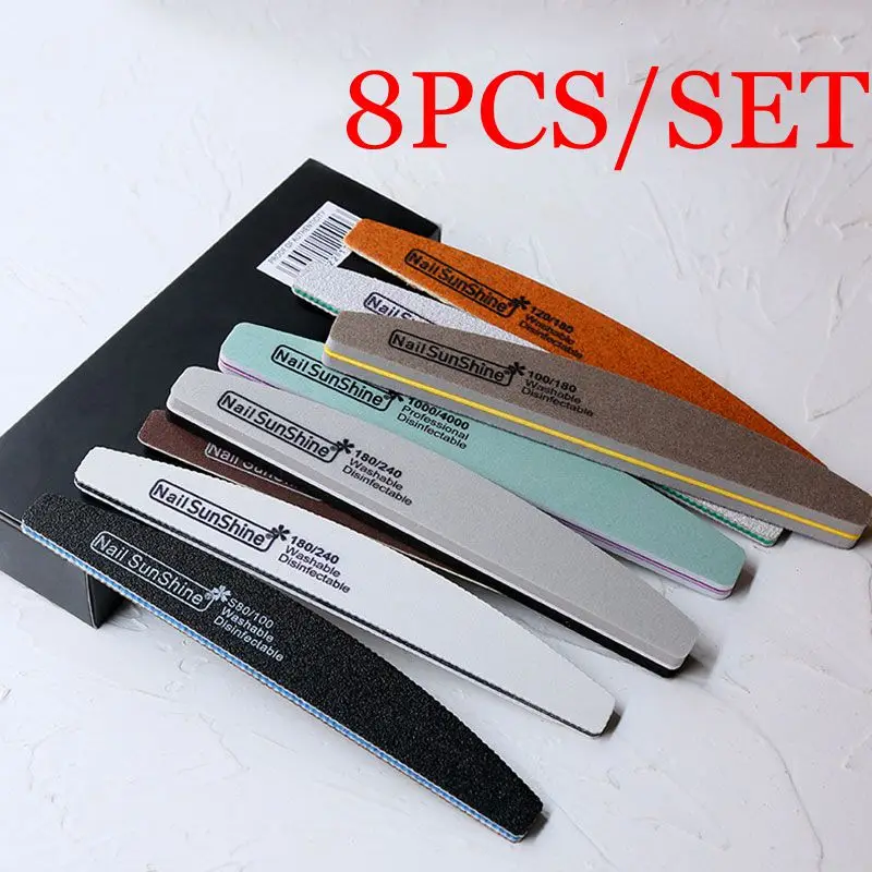 Профессиональная шлифовальная пилка для ногтей, наждачная бумага, моющаяся Банановая полировка, абразивный материал 80100150180240320, изогнутый маникюр