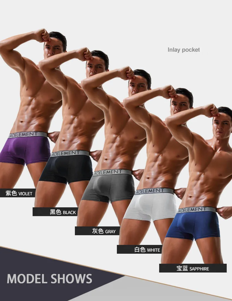 Мужские трусы-боксеры, черные дышащие трусы с карманом-пулей, сексуальное нижнее белье, размера плюс