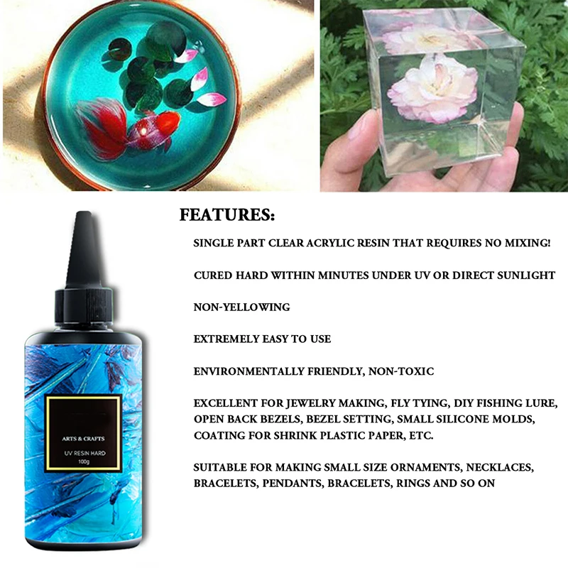 УФ-смола твердая 200 г акриловая ультрафиолетовая прозрачная для изготовления ювелирных изделий