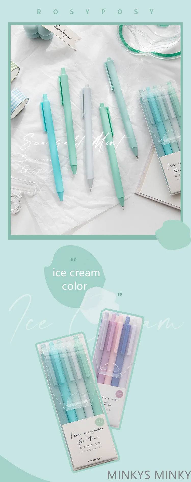 MINKYS Новое поступление, кавайная гелевая ручка с 5 черными чернилами мороженого, творческие школьные и офисные канцелярские принадлежности