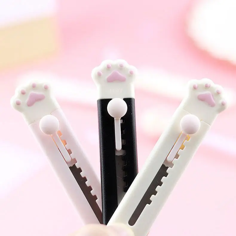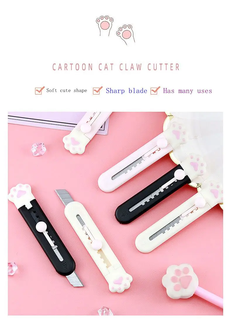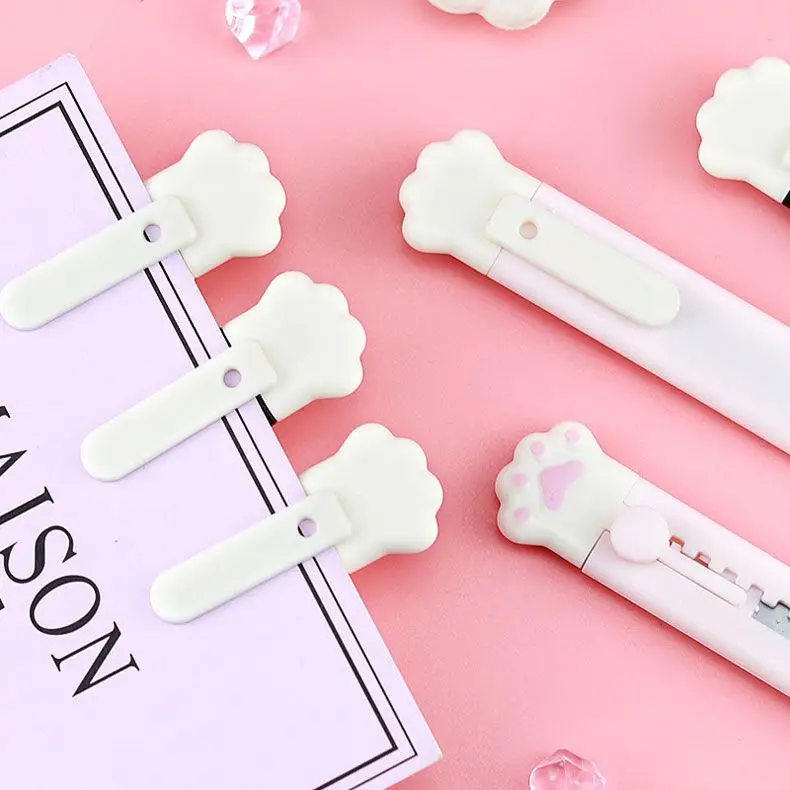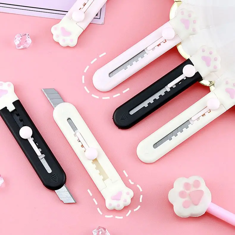 Милый миниатюрный нож с милыми кошачьими лапками, облаками, цветным рисунком, экспресс-коробка, портативный резак для бумаги, лезвие для бритвы, канцелярские принадлежности
