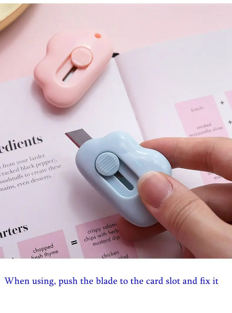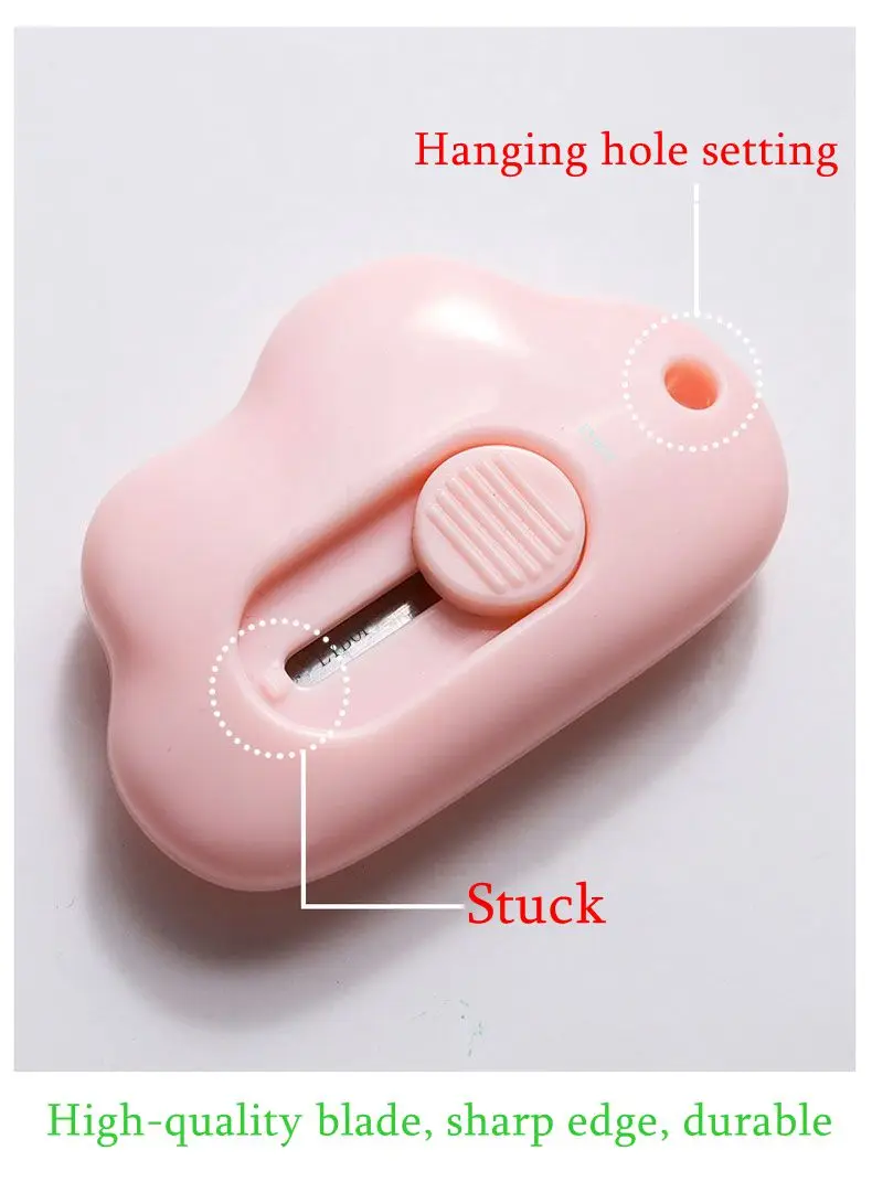 Ножи для творчества в форме облака в трех цветах: белый, розовый и синий. Есть ножи для творчества в форме когтей кошек в трех цветах: розовый, черный и белый. Достаточное количество, красивое сочетание, богатые цвета, достаточно для удовлетворения ваших ежедневных потребностей и использования-Специальный дизайн: есть две различных формы; Форма облака мини-форма является изысканной и компактной, и хвост специально снабжен подвесным отверстием, которое удобно носить с собой. Форма кошачьего когтя маленькая, мягкая и милая, лезвие готово к использованию, а конструкция автоматической блокировки с нажимом удобна для использования, так что вы не будете ранены-- Качественный материал: Изготовлен из пластика и лезвия из нержавеющей стали, прочный, не легко ржавеет, резка аккуратная, длительный срок службы.-- Широкий спектр применения: подходит для различных случаев, является хорошим помощником жизни, учебы и работы. Может быть применен для резки ленты, резки бумаги и открытия букв для офиса и домашнего использования