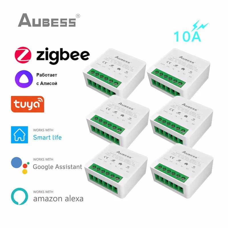 Умный выключатель Aubess ZigBee Tuya, мини-выключатель для автоматизации умного дома, с поддержкой модуля сделай сам, двухстороннее управление, работает с Alexa Alice