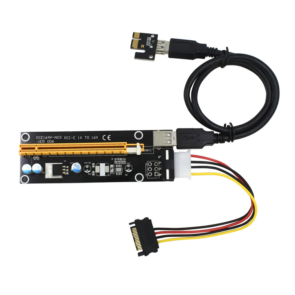2021 PCIe Riser VER006 PCI Express 1x 16x адаптер 15-вытащить шпильку 4 Pin Мощность легко Установка подключаемого модуля устойчивы для шахтера