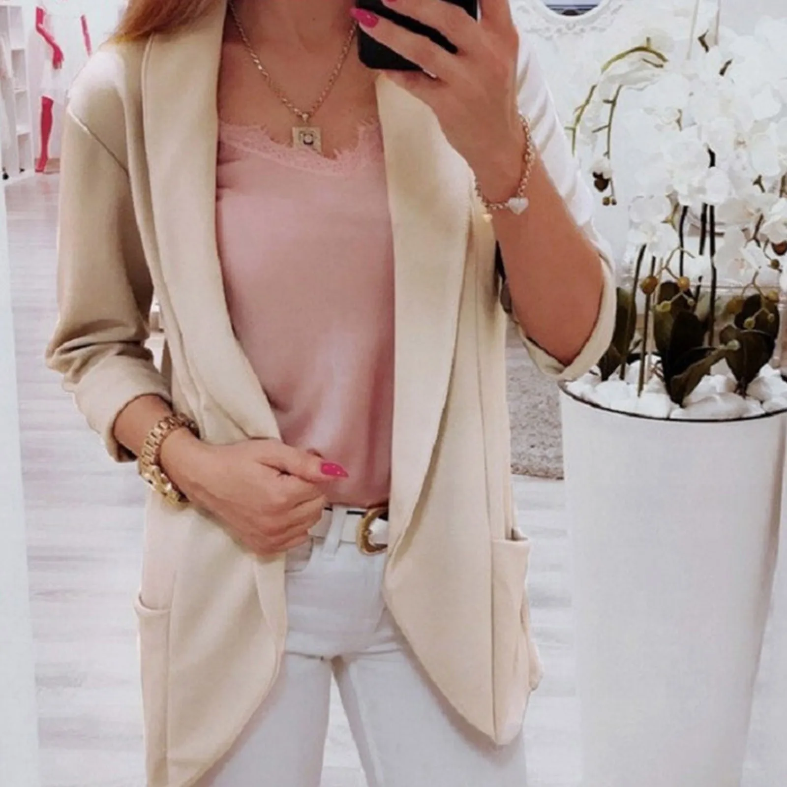 Женский классический пиджак, тонкий однотонный пиджак с длинным рукавом, Осень-зима, пиджак с карманами