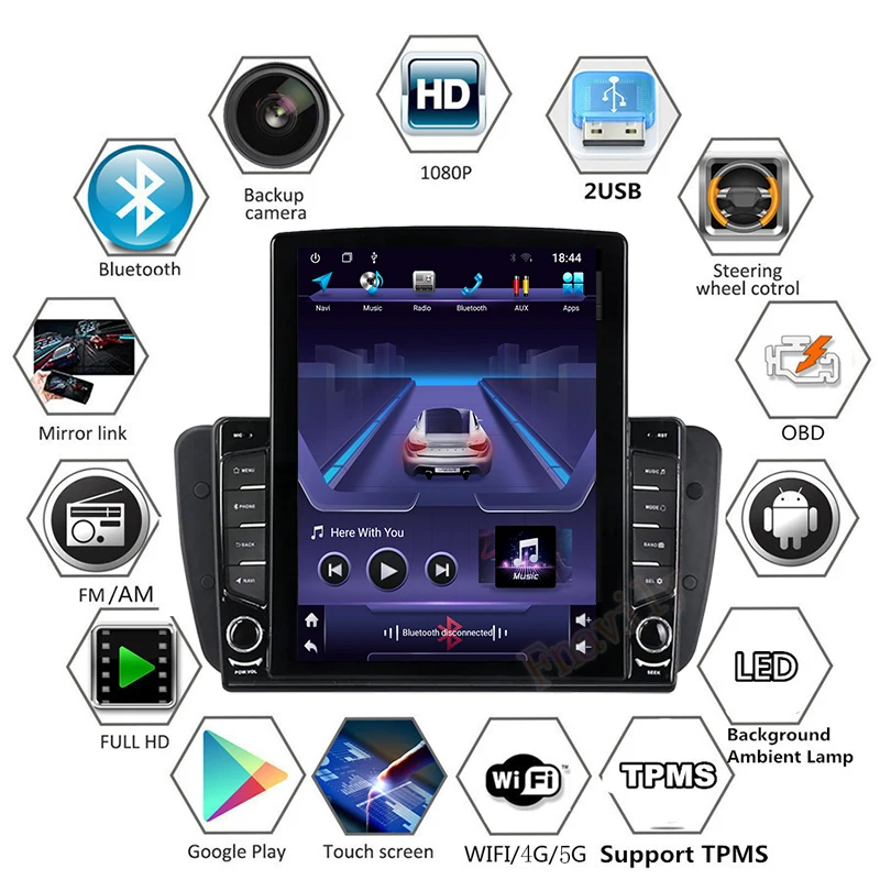 Автомобильный радиоприемник Fnavily Android 10 для Seat Ibiza 6J MK4, Автомобильный мультимедийный проигрыватель с GPS-навигацией и вертикальным экраном в стиле Теслы 9,7 дюйма