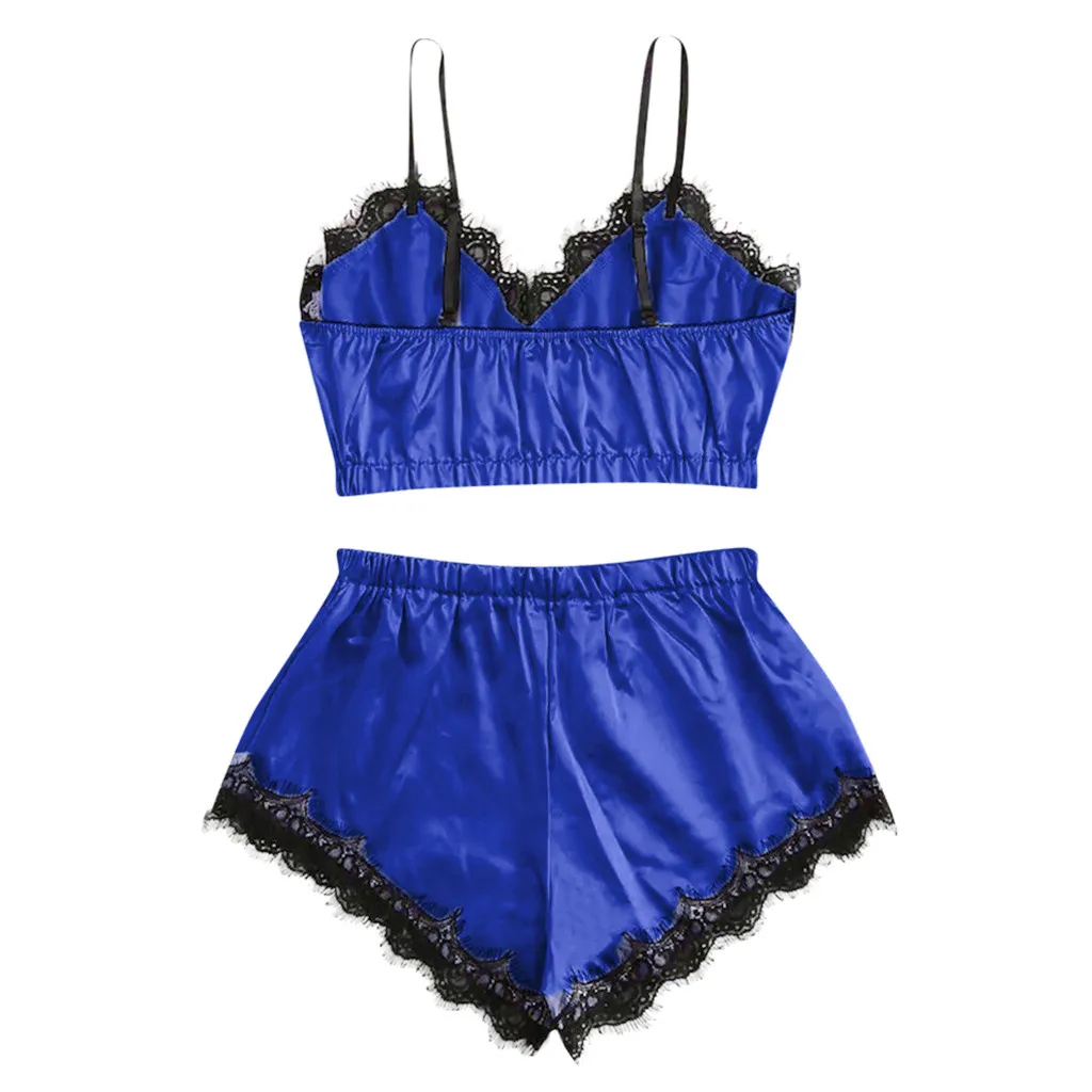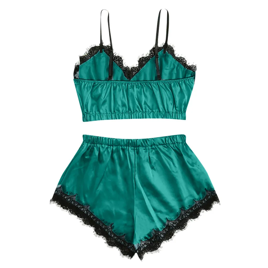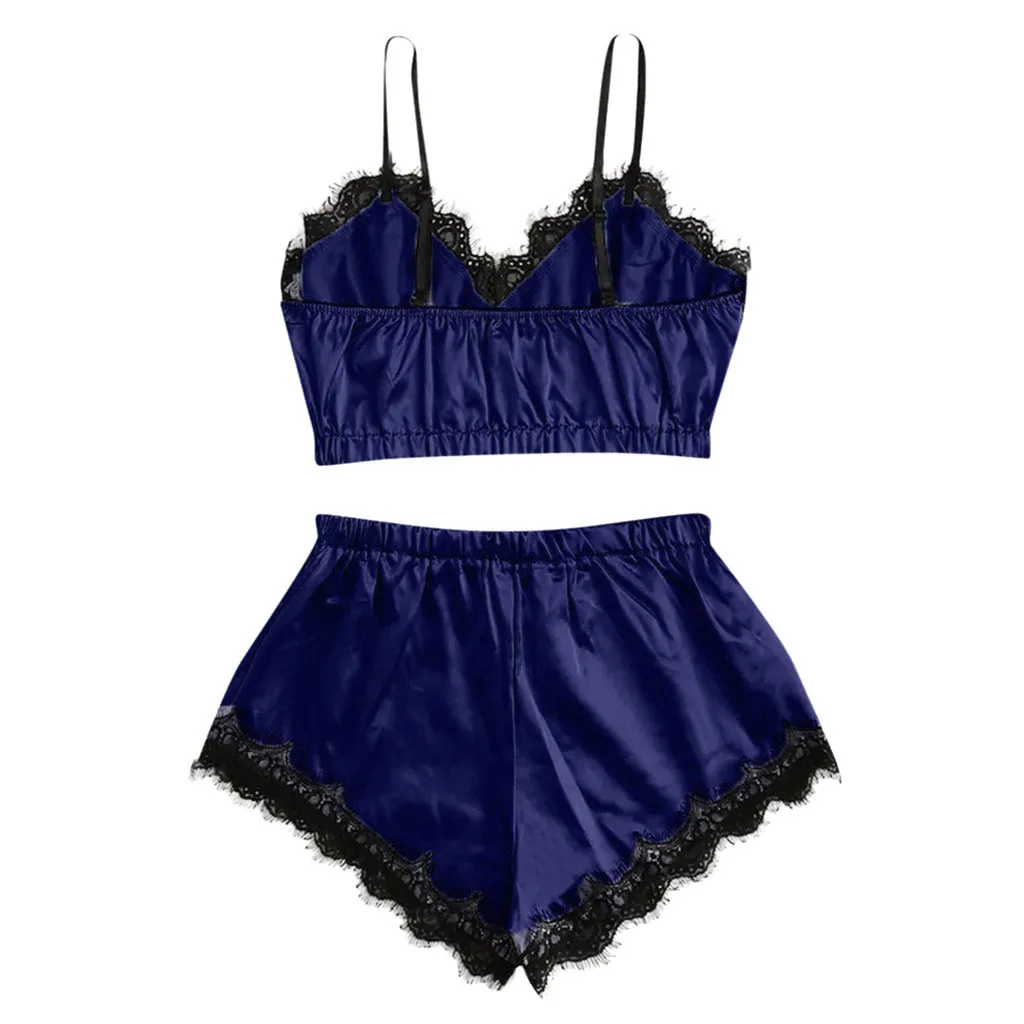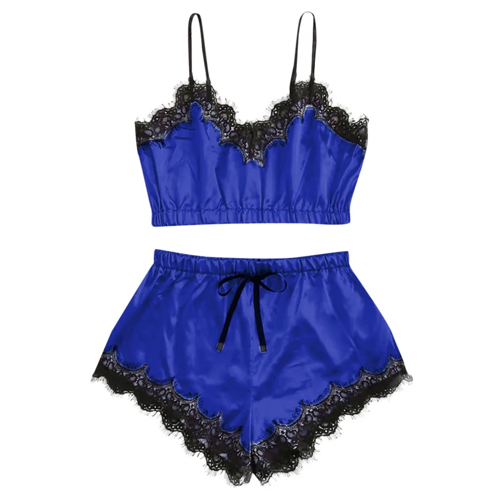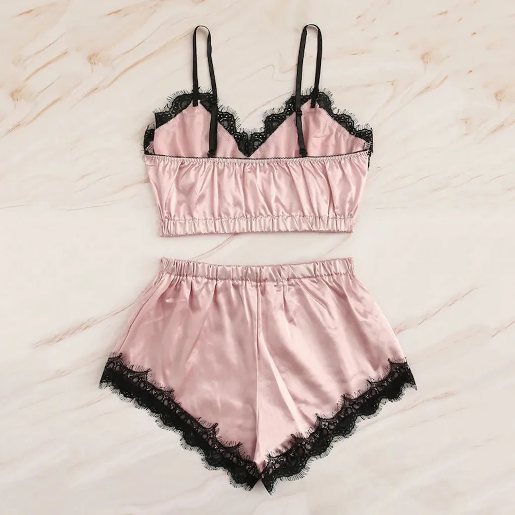Пижама женская кружевная однотонная с V-образным вырезом и шортами