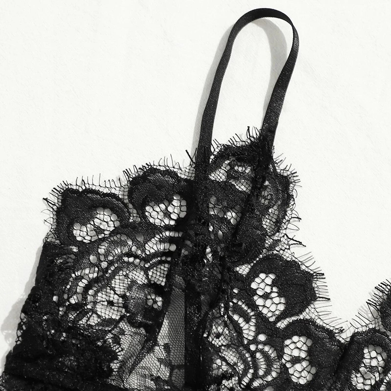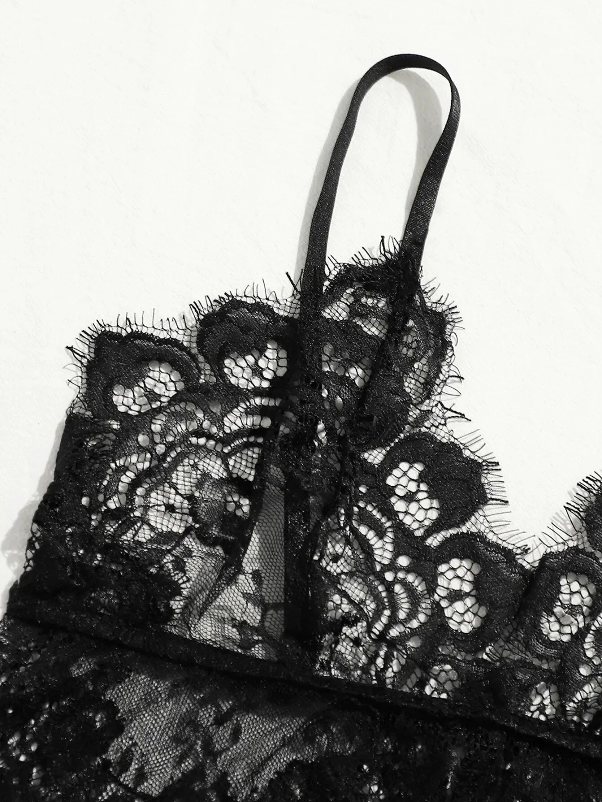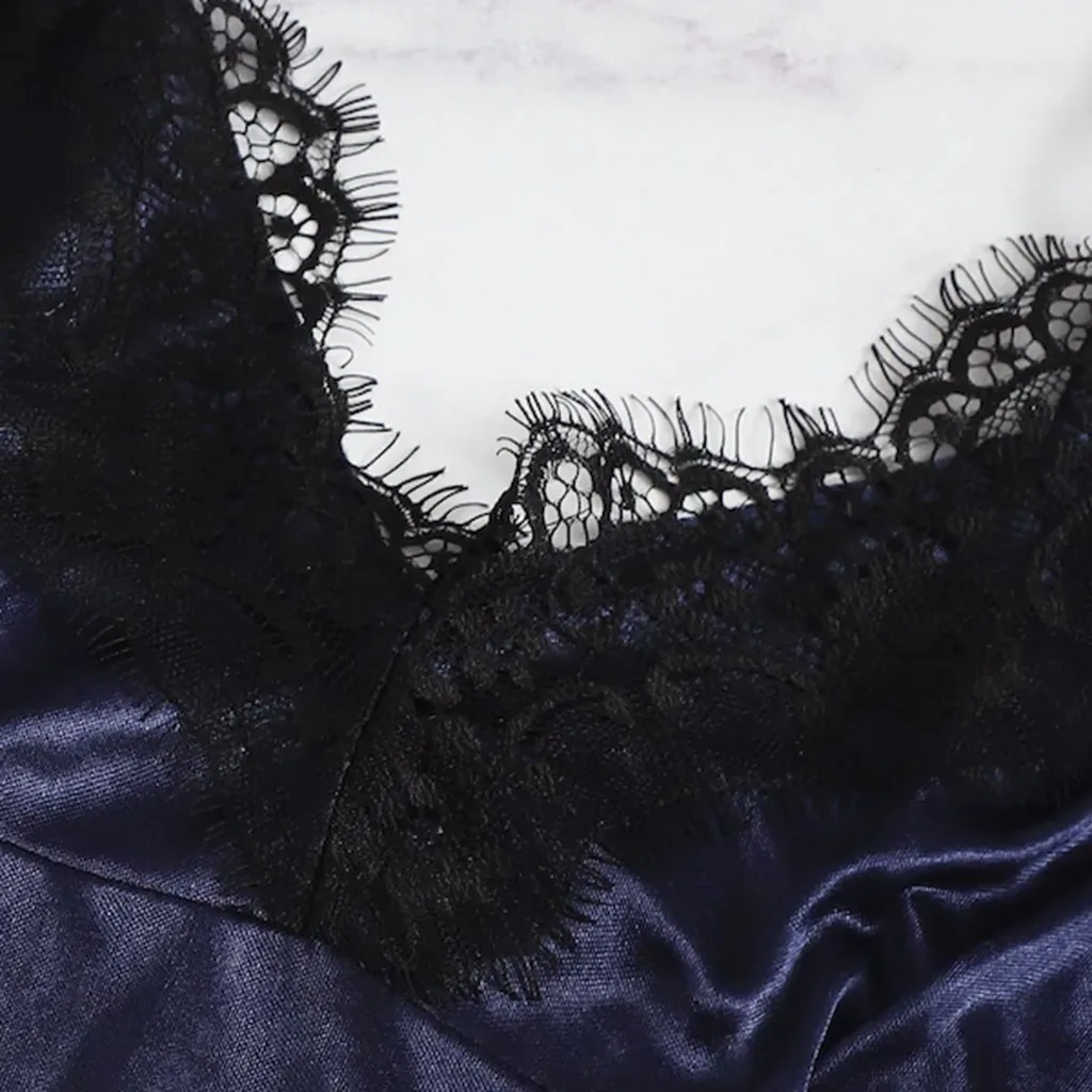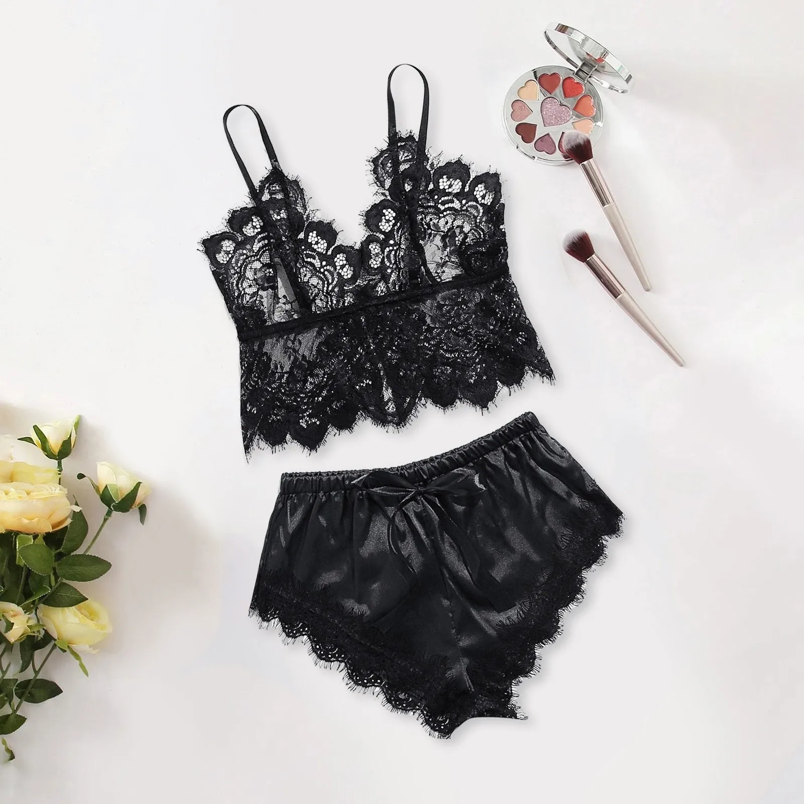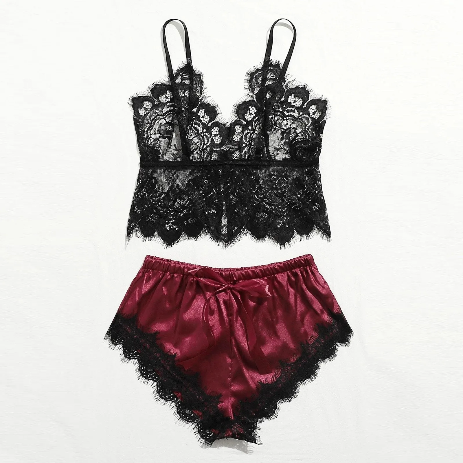Пижама женская кружевная однотонная с V-образным вырезом и шортами