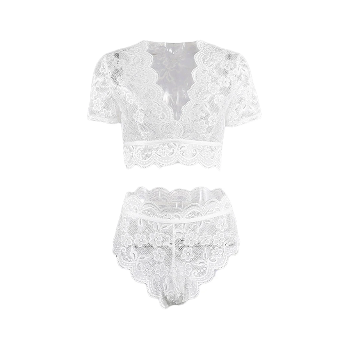 Женские сексуальные девочки из 2х предметов: кружевной женское бельё Комплект комбинация однотонные Цвет с цветочным узором с короткими рукавами, комплект нижнего белья, дамские стринги, одежда для сна, одежда для сна
