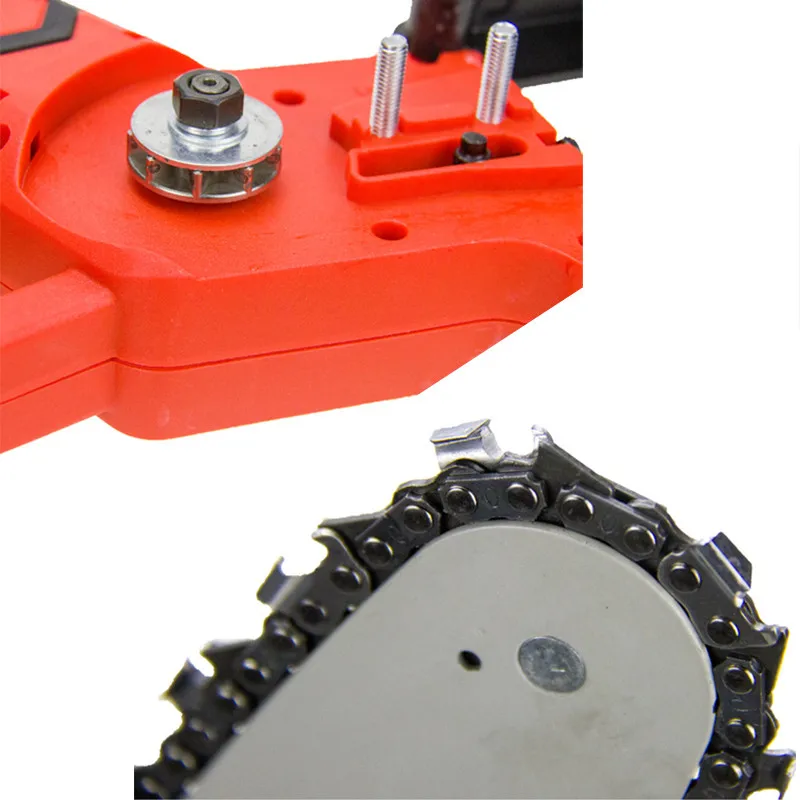 2. Цепь цепной пилы и аксессуары направляющих колес изготовлены из высокоскоростной стали 65Mn, с высокой твердостью, быстрой скоростью нарезки и улучшенной эффективностью.
