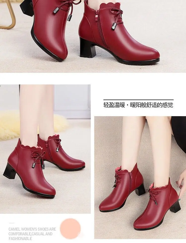 Ботинки женские хб на среднем каблуке, Нескользящие, на осень и зиму