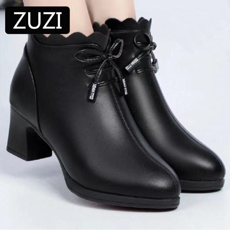 Женские ботинки на среднем каблуке ZUZI, черные ботинки из хлопка, на толстом каблуке, Нескользящие, на осень и зиму, 2021