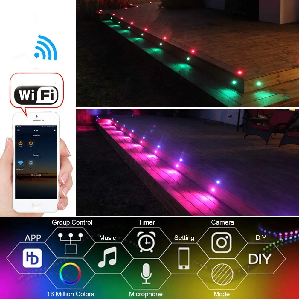 Таймер дистанционного управления 30 шт.лот, черный светодиодный, с Wi-Fi управлением через приложение, 45 мм, 12 В, 5 контактов, RGBW, для двора, террасы, деки, лестницы, потолочные ступенчатые светильники, водонепроницаемость
