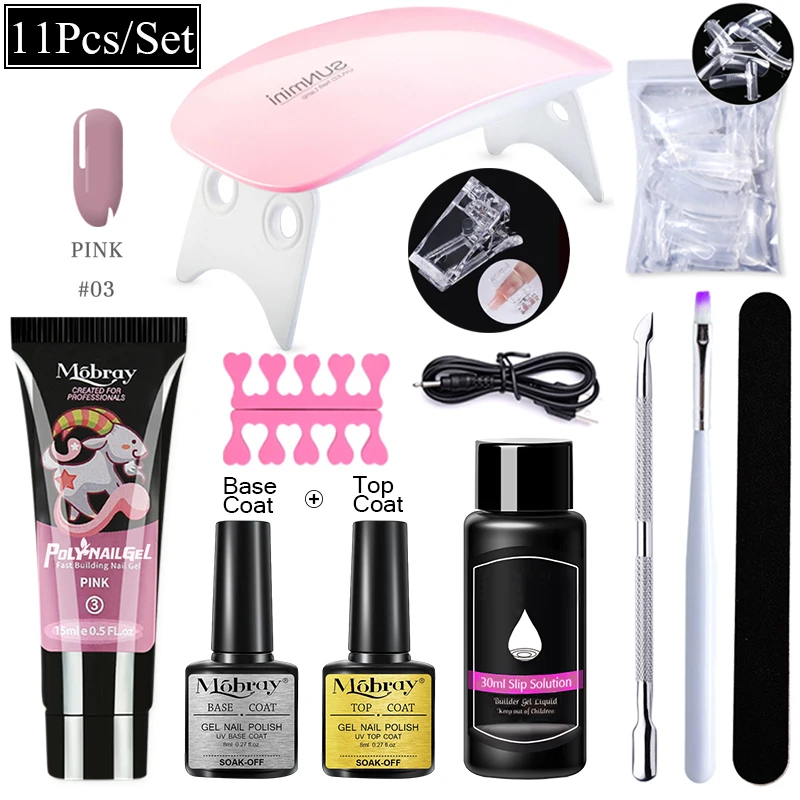 11 шт поли гель для ногтей набор для всех6 Вт УФ/Светодиодная лампа: 1 шт.15 мл полигель для ногтей: 1 шт.30 мл раствор скольжения: 1 шт.Базовый слой объемом 8 мл: 1 шт.8 мл верхнее пальто: 1 шт.Толкатель для кутикулы из нержавеющей стали: 1 шт.Кисть для ногтей: 1 шт.20 шт./упак. ногтей советы: 1 шт.Зажим для кончиков ногтей: 1 шт.Пилка для ногтей: 1 шт.Разделители пальцев: 1 шт.