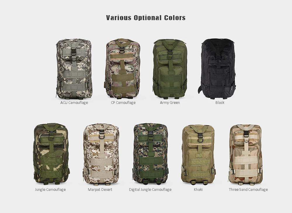 Посылка Вес: 0,969 кгРазмер продукта (Д x Ш x В): 45,00x24,00x21,00 см/17,72x9,45x8,27 дюймовРазмер посылка (Д x Ш x В): 29,00x22,00x11,50 см/11,42x8,66x4,53 дюймовПосылка: 1x3P военный 30L рюкзак, спортивная сумка для кемпинга, Путешествий, Походов Обратите внимание:Из-за возможных физических различий между разными мониторами (например, модель, настройки, цветовая гамма, тип панели, блики экрана и т. д.) товар, изображенный на фотографии, является только иллюстрацией и не может точно отображать фактический цвет приобретенного товара.