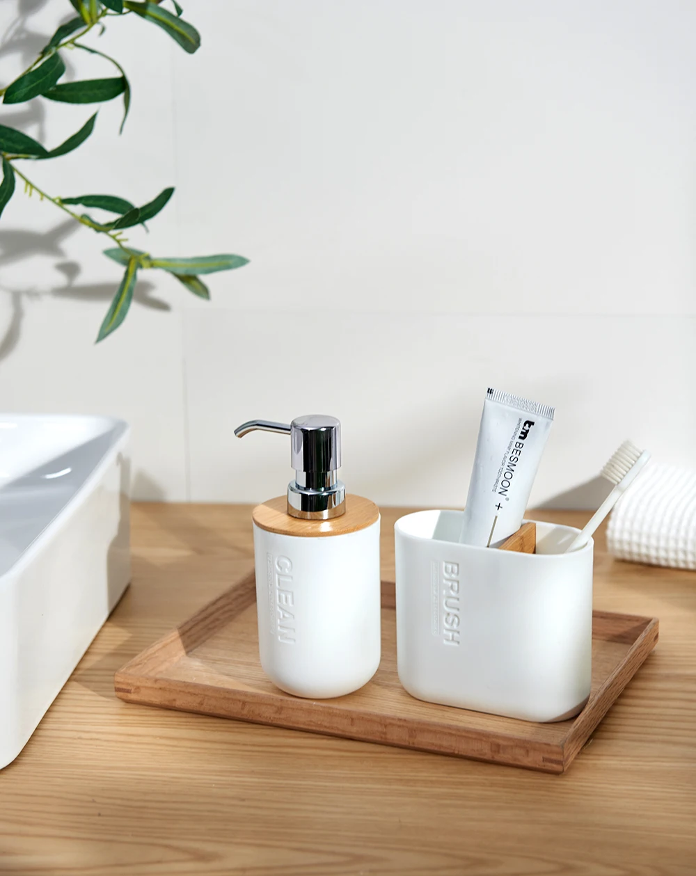 Изготовлен из полипропиленового материала, экологически чистый и здоровый.Украшенный бамбуком и деревом, натуральный, элегантный и со вкусом. Мыльница:Бамбуковые деревянные поддоны могут быть вывезены.Полый дизайн с функцией слива. Дозатор мыла:Гладкие и гладкие насадки подходят для вашей ладони. Держатель зубной пасты:Встроенная бамбуковая перегородка для разделения зубной пасты и зубной щетки.Бамбуковая перегородка может быть вывезена. Держатель зубной щетки:Четырехкомпонентный дизайн для зубных щеток до 4.Бамбуковая перегородка может быть вынута, затем держатель зубной щетки может использоваться в качестве чашки. Комплект из пяти предметов включает: 1x мыльница (с деликатной коробкой)1 дозатор для мыла (с деликатной коробкой)1x держатель зубной пасты (с деликатной коробкой)1x держатель для зубной щетки (с деликатной коробкой)1 чашка для рта (с деликатной коробкой)