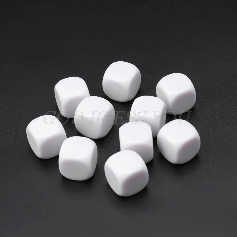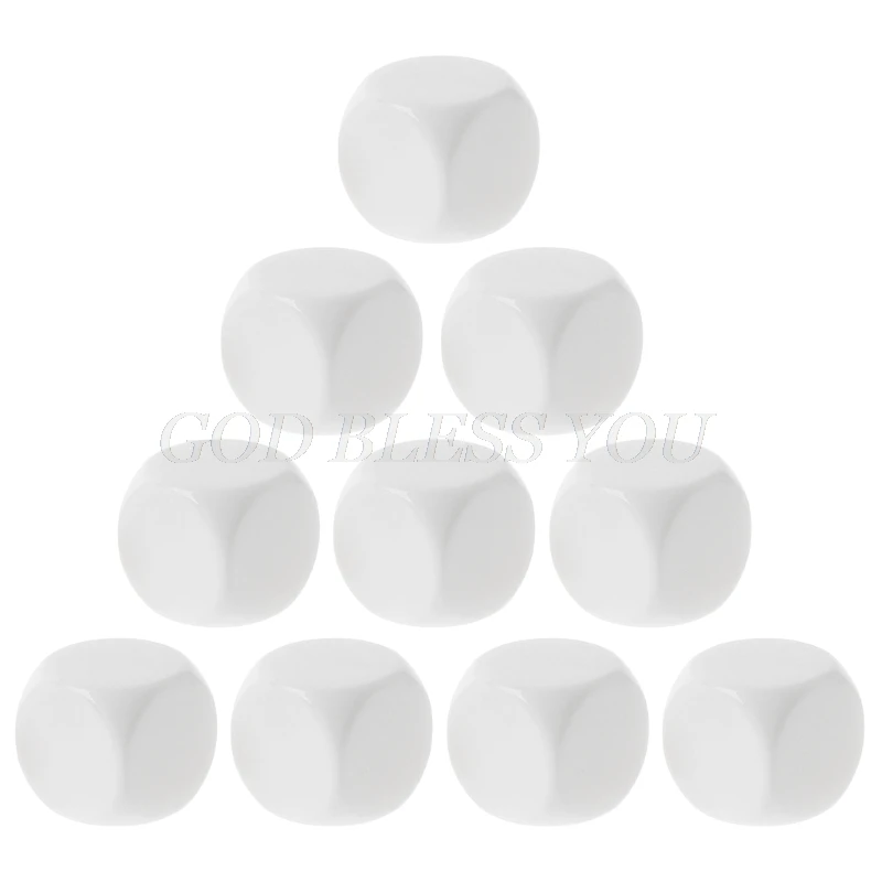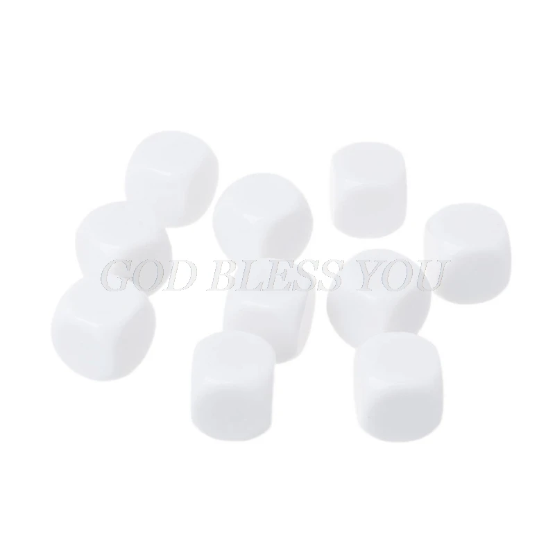Акриловые белые пустые игральные кости 10 шт.упак. 101214161820 мм, обучающие игрушки для детей, однотонные самодельные кости, Прямая поставка