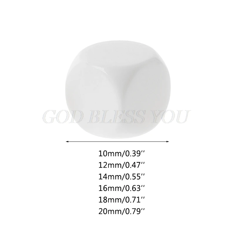10 шт. 10 мм/12 мм/14 мм/16 мм/18 мм/20 мм белые пустые D6 акриловые кости с круглым уголком для детей DIY живопись граффитиОсобенности: