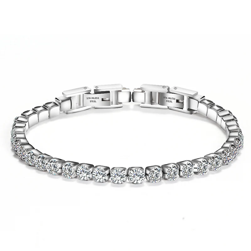 Теннисные браслеты высокого качества, украшенные прозрачным кубическим цирконием, браслет из нержавеющей стали для девочек, ювелирная цепочка для вечеринок