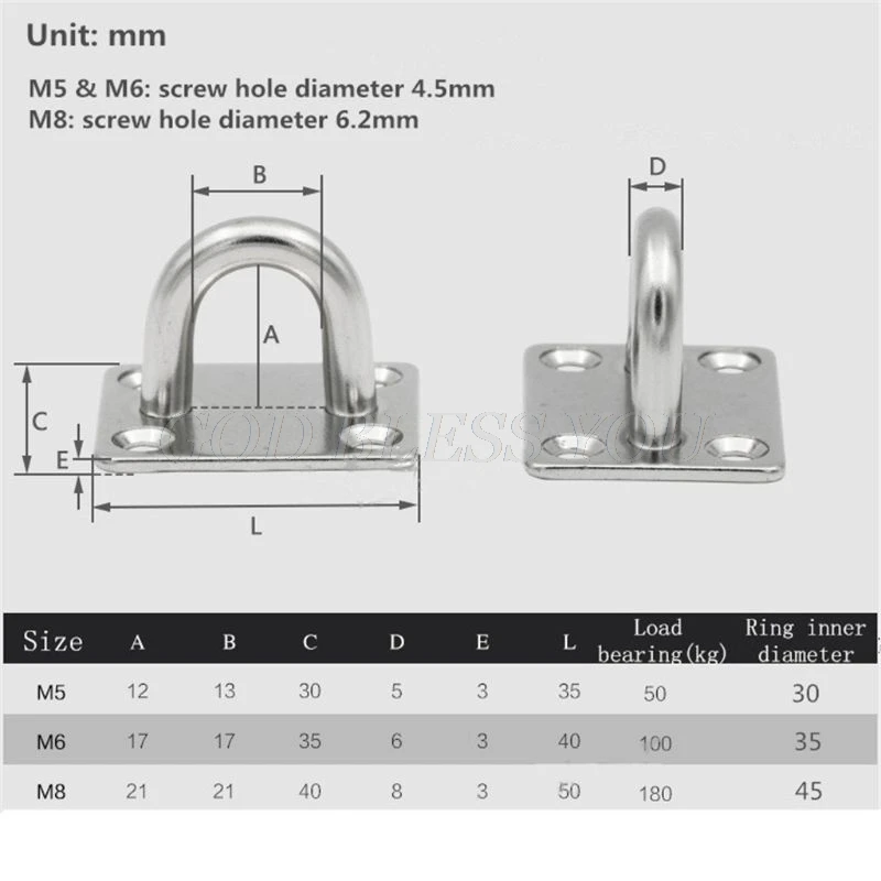 1 шт. 304 квадратная накладка из нержавеющей стали, крючок для глаз с круглым кольцом, оборудование для лодкиСверхмощный 304 квадратная накладка из нержавеющей стали, крючок для глаз с круглым кольцом, лодка, морское оборудование для парусного спорта, лодки M5/M6/M8Особенности:100% новый товар высокого качества.Сверхмощные квадратные пластины с проушиной с кольцом.Аксессуары для парусной лодки, Каяка, яхты Sunshades.304 конструкция из нержавеющей стали, полировка поверхности.Высокая прочность, подходит для всех применений chandlery, морского и промышленного использования.Характеристики:Цвет: серебристыйМатериал: нержавеющая сталь 3043 размера: M5/M6/M8 (как показано на рисунке)Количество: 1 шт.