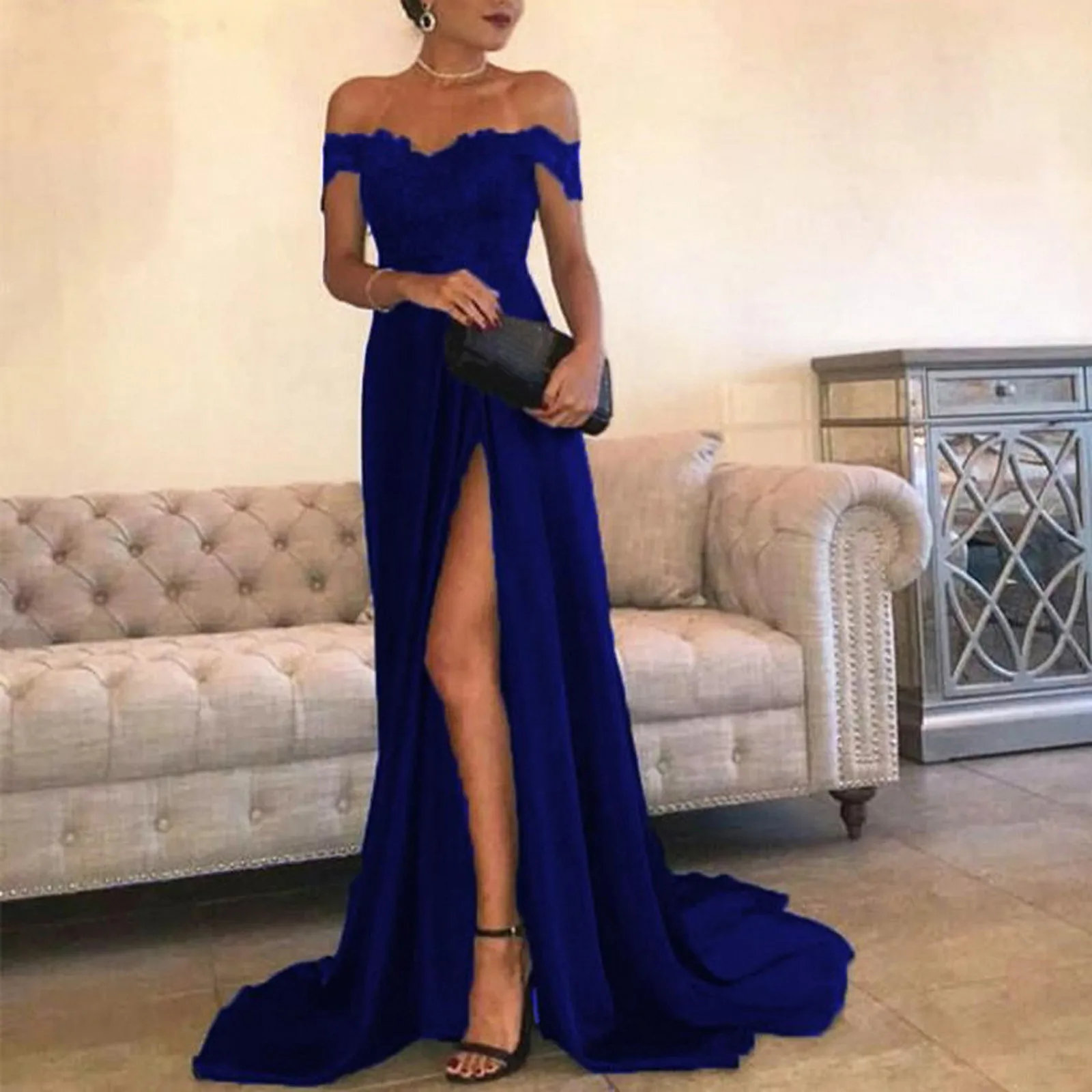 Женское однотонное кружевное платье с разрезом на одно плечо, длинные юбки
