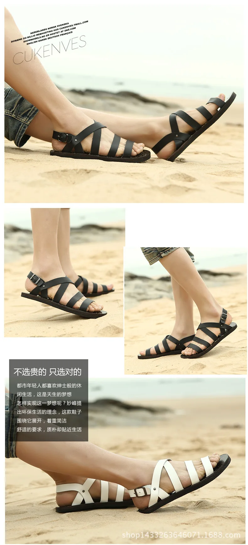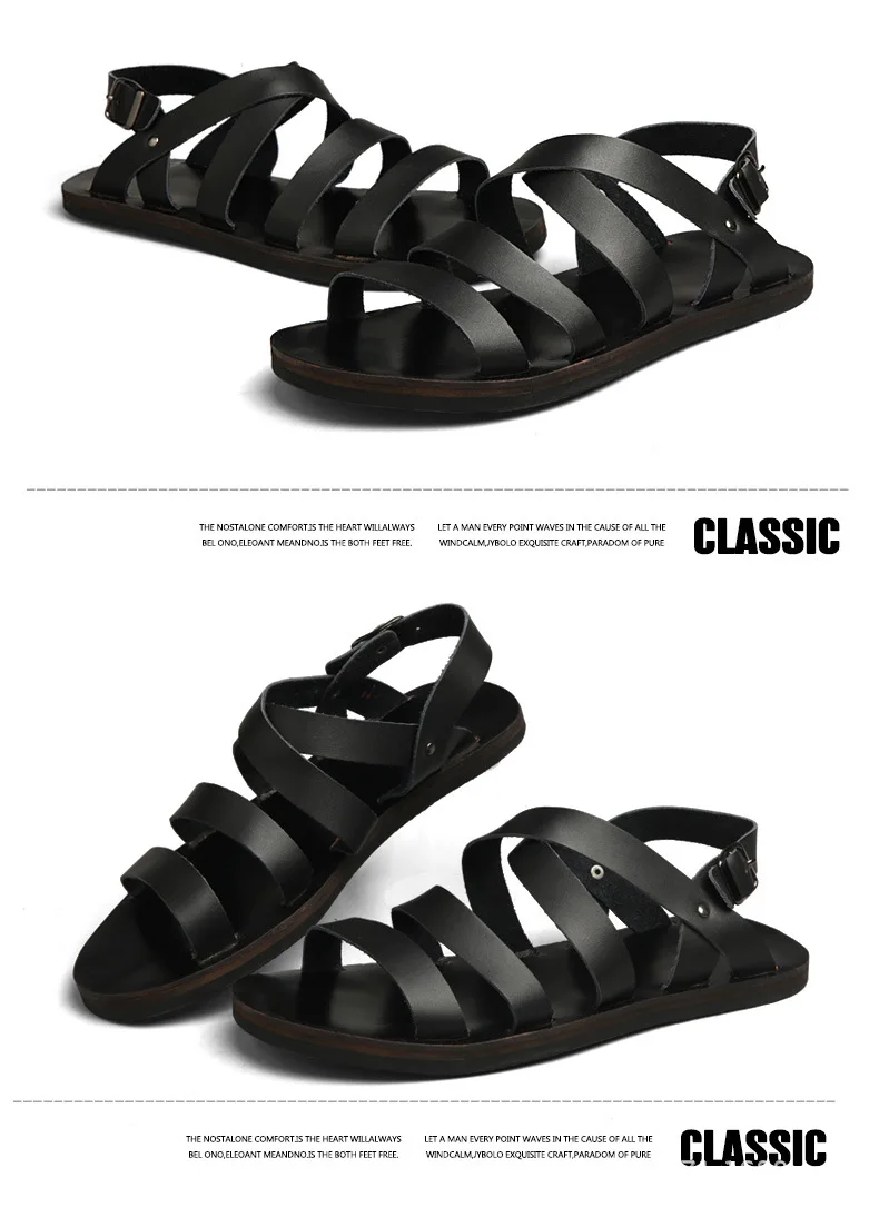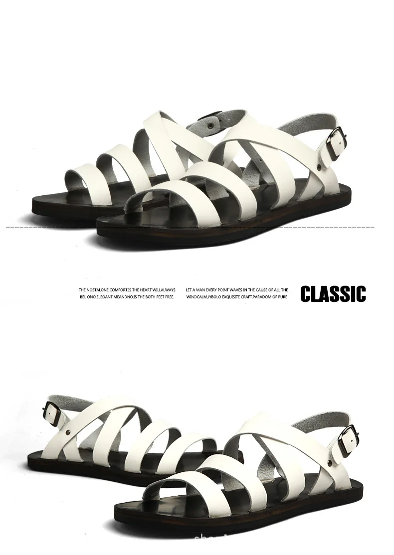 Мужские сандалии из коровьей кожи, черные или Белые пляжные сандалии на плоской подошве, лето 2021