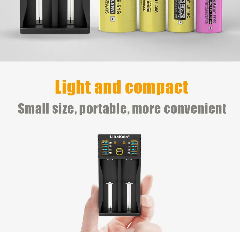 LiitokalaLii-100 зарядное устройство Lii-100B 18650 зарядное устройство 26650 AA AAA1.2V Ni-MH 3.2VLiFePO4 14450 18350 16340 3,7 V Li-Ion smart