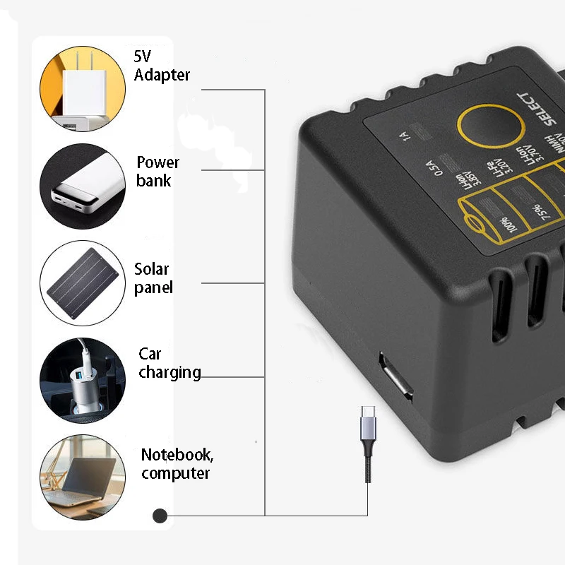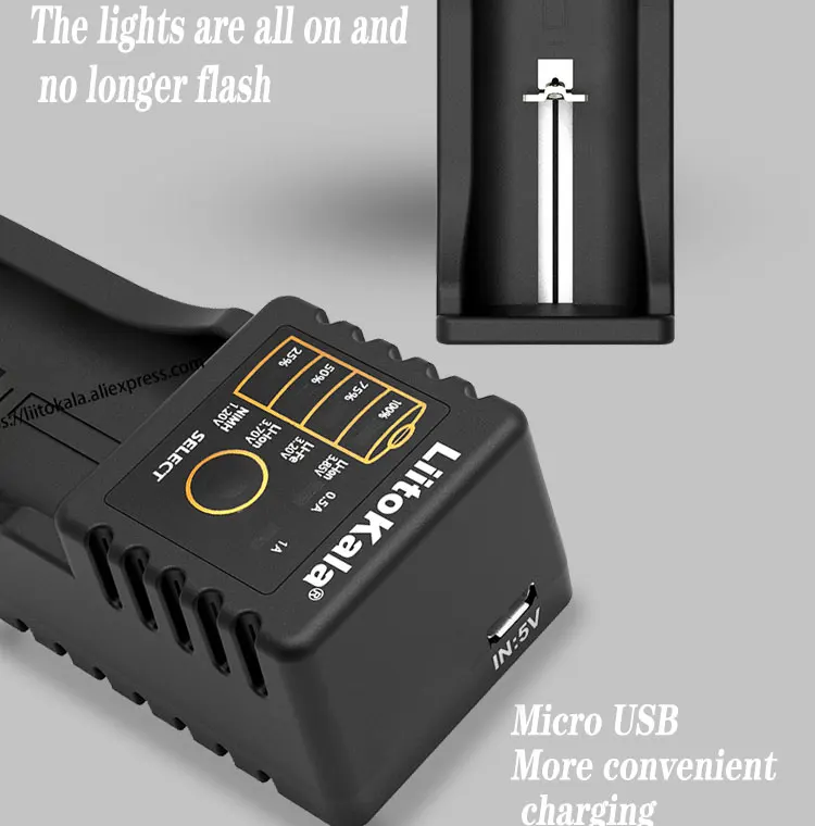 Особенности:One система зарядки и управления одним слотом, входной порт Micro USB DC 5V500 500 мАч/1000 мАч зарядный ток для выбораBuilt Встроенный светодиодный индикатор показывает состояние зарядки 25% - 50% - 75% - 100%Identify автоматическое определение литий-ионного и ni-mh аккумулятораНеобходимо зафиксировать режим зарядки в Li-Fe при зарядке аккумулятора LiFePO4 или литий-ионного аккумулятора 3,85 В(Определите 1,2 V Ni-MH/3,7 V литий-ионный аккумулятор автоматически и выберите вручную для 3,85 V батареи li-ion и LiFePO4 батареи)Function функция обновления для аккумулятора 0 В Упаковке и не можем отправить заряд аккумулятора типа 1,6-2,2 VProtection защита от перезарядки и переразрядаIdentify Определение неисправности/неисправности аккумулятораPolarity-Защита от неправильной полярностиCharging зарядка при постоянном напряжении и токе