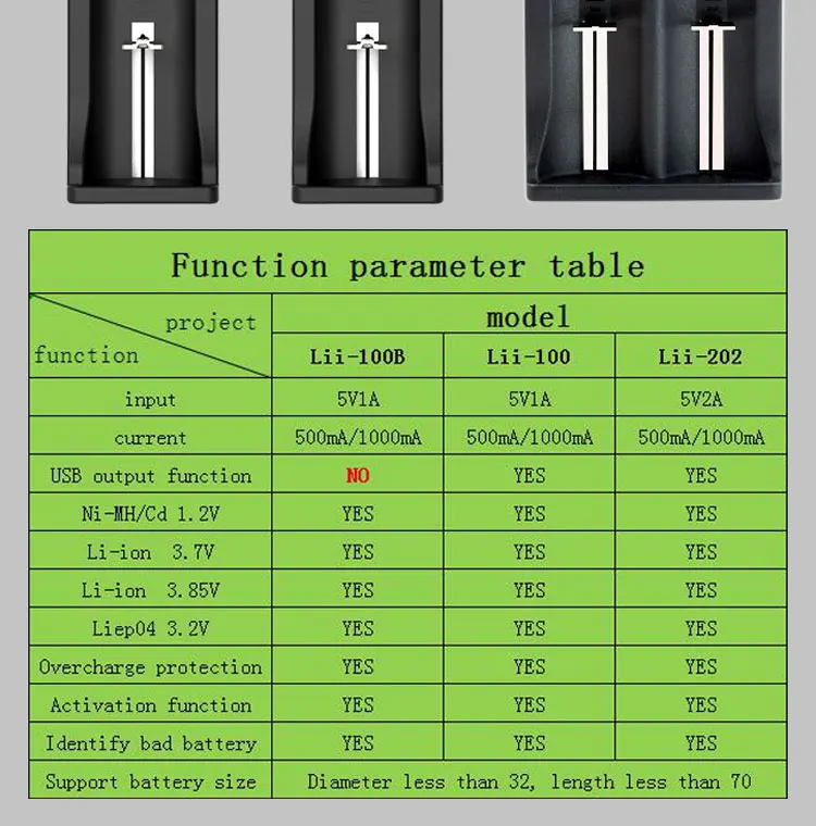 Lii-100B Руководство пользователяЭто зарядное устройство предназначено для портативного, гибкого и нескольких типов батарей. Он может обнаруживать Тип аккумулятора и автоматически заряжать аккумулятор под выбранным вами током зарядки. Встроенный светодиодный индикатор для отображения состояния зарядки.