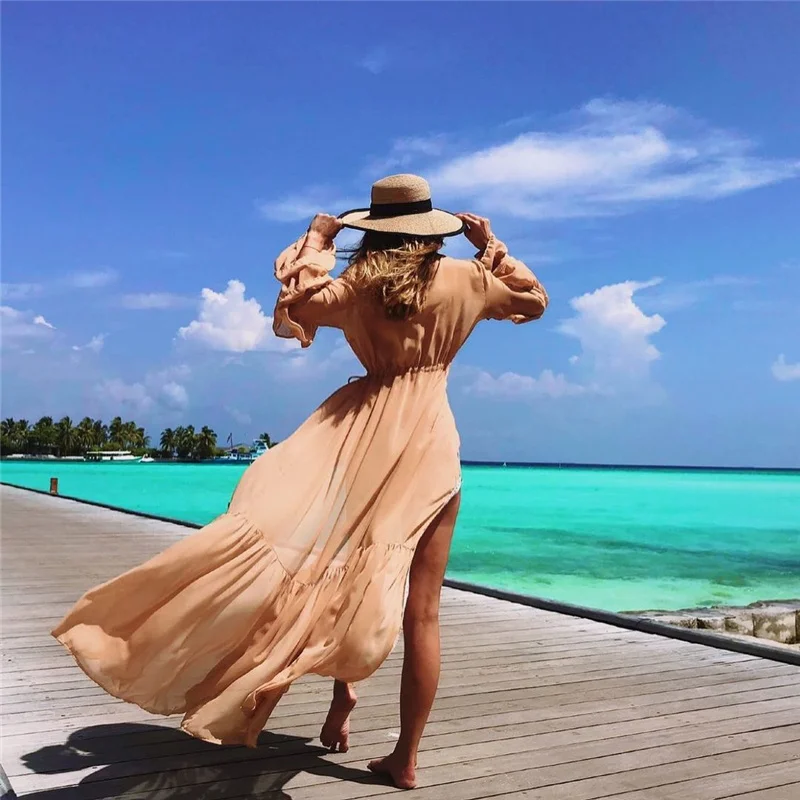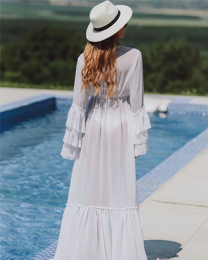 Сексуальная накидка на бикини, длинная белая туника, повседневное летнее пляжное платье, элегантная женская пляжная одежда большого размера, накидка на купальник