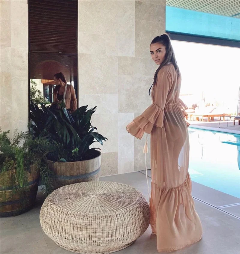 2019 Пляжная накидка, женский купальник, длинный кафтан, Пляжная ту...