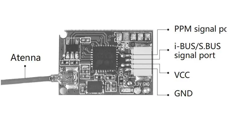 Тип модуляции: GFSKDSC порт: PPM/i-BUS/S.BUSМетод передачи: FHSSВыход данных: 1,5 мм * 3 Pin PPM/i-BUS/S.BUS