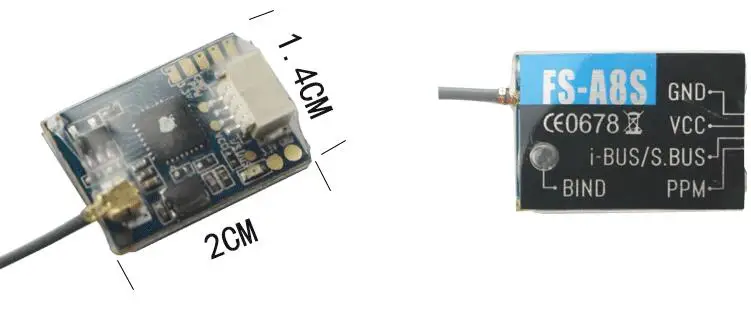 В FS-A8S представляет собой компактное 1-way приемник предназначен для многомоторный двигатель самолета. Он использует протокол AFHDS 2A(Aotumatic Frequescy Hopping Digital System), поддерживает стандартный выход PPM и поддерживает i-BUS до 18 каналов.Описание: