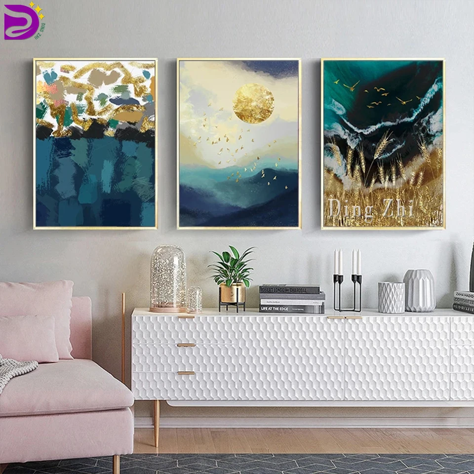 3 шт. Золотое пшеничное поле солнце Волны Абстрактный пейзаж алмазная живопись современный домашний декор Алмазная вышивка мозаика изображение триптиха