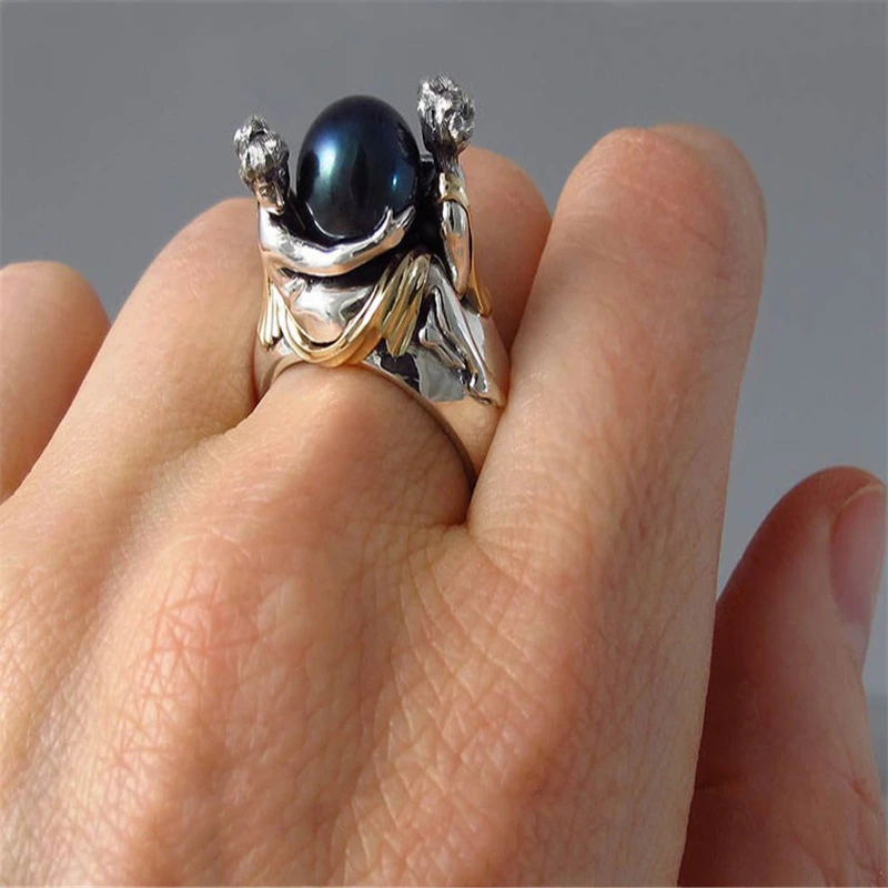 Название: модное креативное жемчужное кольцо черного и серебристого цвета