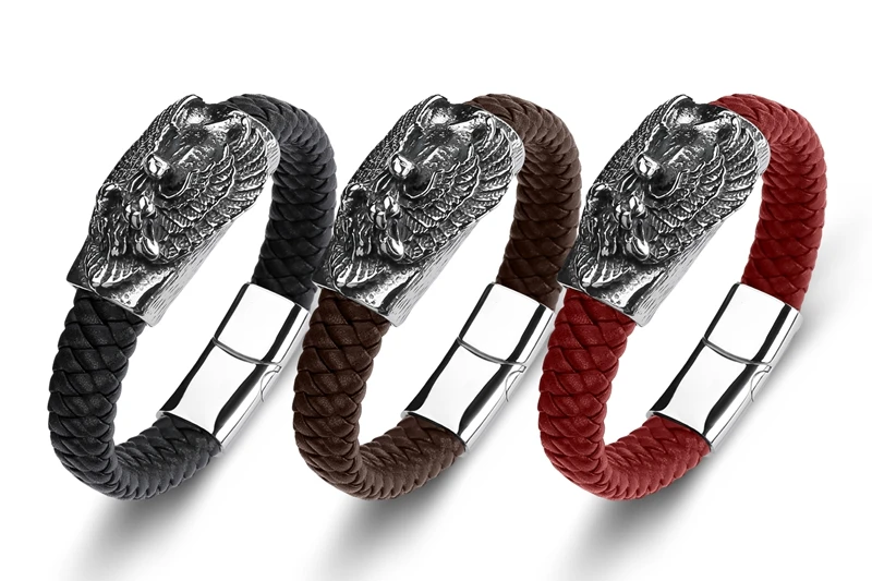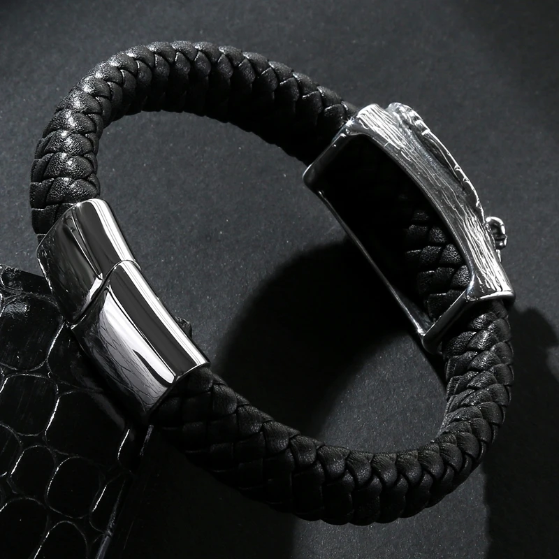 Мужской кожаный браслет в стиле панк-рок, из нержавеющей стали