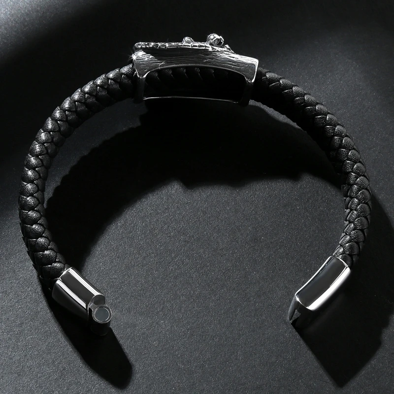 Новый дизайн, мужской кожаный браслет с черепом из нержавеющей стал...