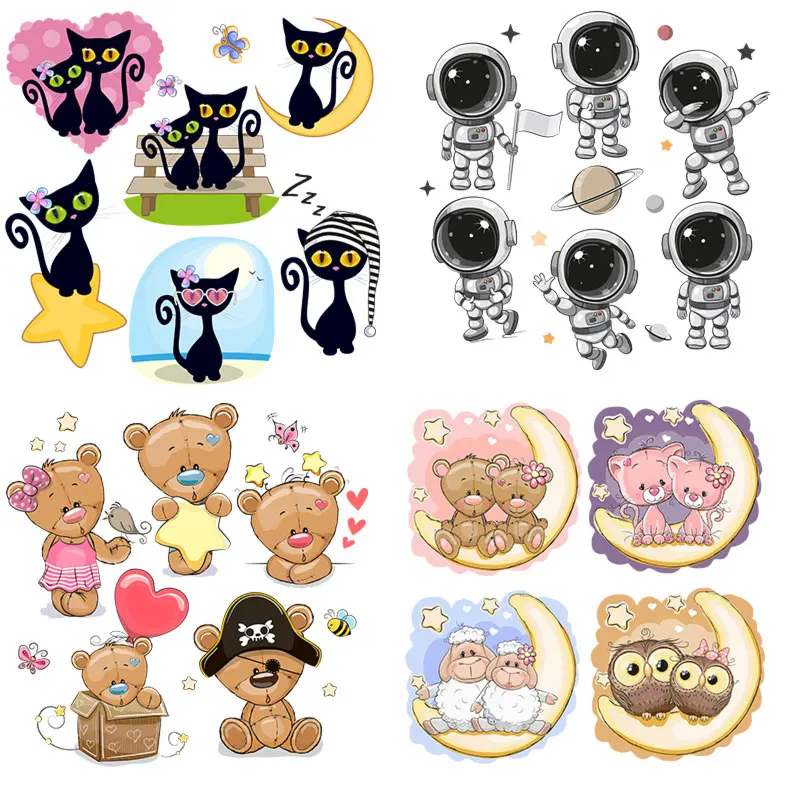 Для переноса утюгом комплект с рисунком кошки медведя термочувствительного патчи Применение одного полоски на одежде гладильная печати на ткани для одежды, топы