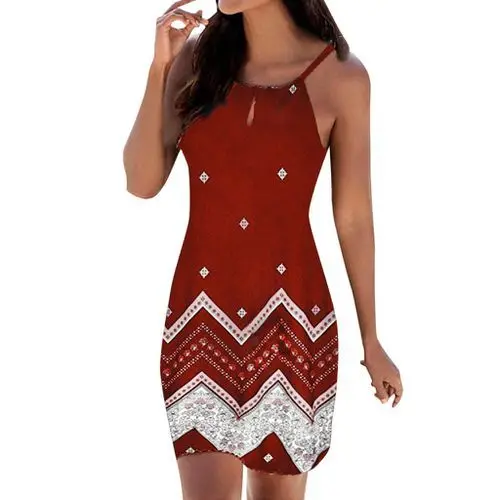 Женские летние пляжные Boho печать с лямкой на шее без рукавов плат...